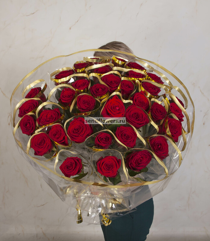 Состав: Лента натуральная (40), Роза Гран При (51), Пленка прозрачная (25)