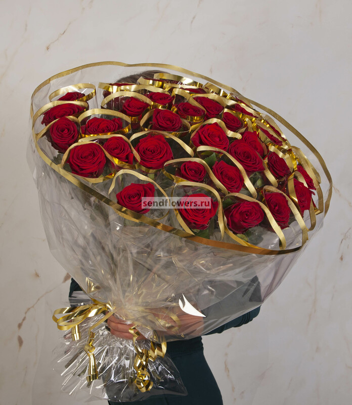 Состав: Лента натуральная (20), Роза Гран При (25), Пленка прозрачная (15)